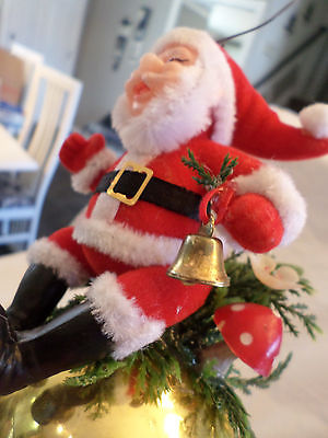 Vtg Flocked SANTA Mushroom mercury glass JAPAN chenille HUGE 7" xmas Ornament