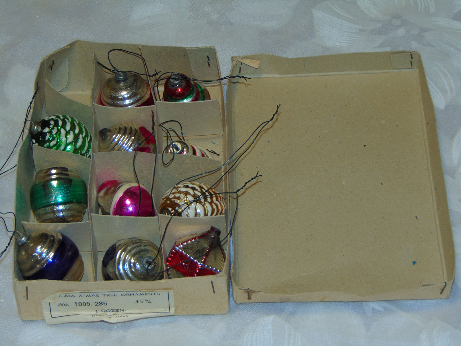 Title (ebay affiliate link): box 11 Japan Christmas Balls Santa Head Pinecones Lanterns bells ornaments