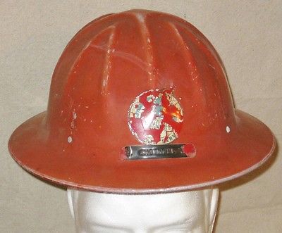VINTAGE ALUMINUM HARD HAT SAFE-T FULL BRIM BF MCDONALD RED PAINT LOS ANGELES A