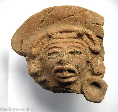 c.500 B.C Large Pre Columbian MAYA Civilization Clay Statue Idol Section - Head