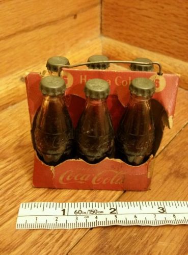 Title (ebay affiliate link): Vintage Coca Cola Miniature Coke 6 Pack Glass Bottles Advertising Cardboard