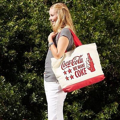 Title (ebay affiliate link): Coca-cola~We Want Coke We Want CokE~Oversized Tote Bag with Matching Wristlet