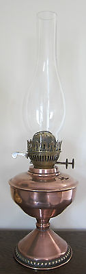 OLD COPPER OIL LAMP WITH GLASS CHIMNEY