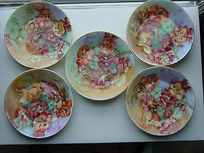 VINTAGE PLATES O&EG ROYAL AUSTRIA FLORAL PORCELAIN 5 HAND PAINTED