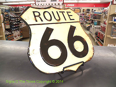 Title (ebay affiliate link): Route 66 Vintage Looking Embossed 3D Metal Street Sign Mother Road T Bird RT 66