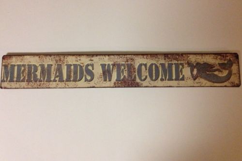 Title (ebay affiliate link): MERMAIDS WELCOME VINTAGE LOOK METAL SIGN WOMAN CAVE SEA OCEAN SURF BEACH ROOM