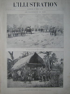 OLD PRINT ENGRAVING 1893 SIAM THAILAND LAOS ELEPHANT CHAN ARMY