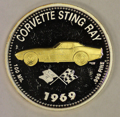 Title (ebay affiliate link): 1969 CORVETTE STING RAY 1 OZ ROUND ( 100 MIL of .999 SILVER )
