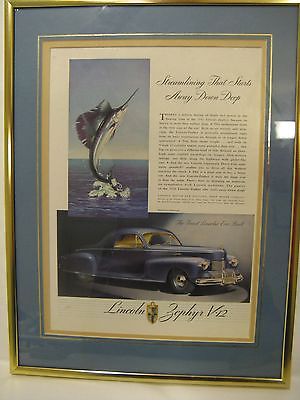 Title (ebay affiliate link): Original 1942 Lincoln Zephyr V-12 ad with gold frame and mat