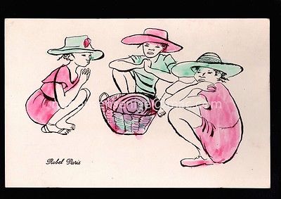 WEST INDIES HAITI WOMEN HAT VENDORS Artist Robel, Paris POSTCARD E20C