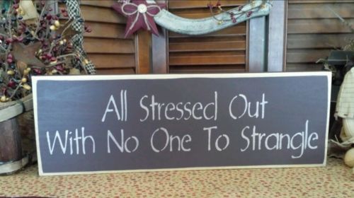 Title (ebay affiliate link): Primitive Country Shelf Sitter Sign..."All Stressed Out With No One To Strangle"