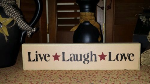 Title (ebay affiliate link): Primitive Country Shelf Sitter Sign......"Live...Laugh...Love" Burgundy Stars