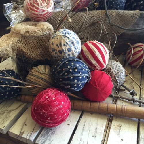 Title (ebay affiliate link): Americana 8 Fabric Balls Primitive Decor Prim Red white Blue Prim Country Chic