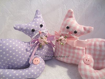 Pair of Primitive Cat Shelf Sitters ~Handcrafted Pink Plaid ~ Purple, Polka Dots