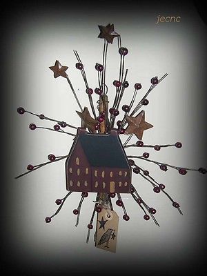 Title (ebay affiliate link): Primitive Vintage Wooden Textile Spools Bobbin Saltbox House Stars Berry Pic