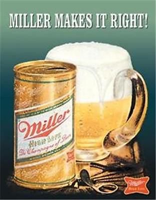 Miller Makes Right Retro Metal Beer Sign Poster Old Bar Pub Decor USA Gift 16"
