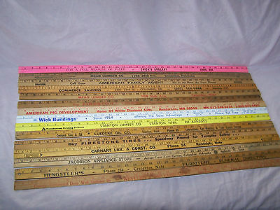 VINTAGE ADVERTISING YARDSTICKS 15 , FIRESTONE, CONOCO OIL, ECT. MIXED STATE