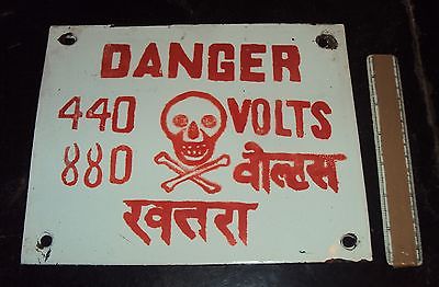 Vintage Advertising Porcelain Enamel Sign DANGER 440 VOLTS RARE