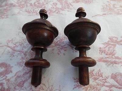 PETITE PAIR ANTIQUE FRENCH WOODEN FINIALS - CURTAIN POLES OR FURNITURE