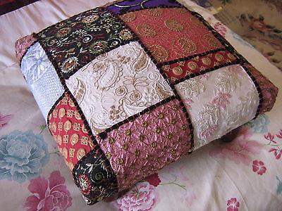 A PRETTY VICTORIAN STYLE UPHOLSTERED WOODEN STOOL ~ INDIAN ~ PATCHWORK DESIGN.