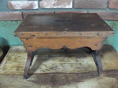 Old & Primitive Wooden & Rod Iron Foot Stool Bench