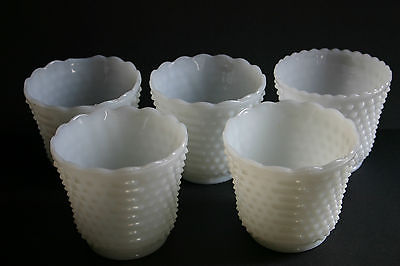 (5) Anchor Hocking Fire King Milk Glass Hobnail Planter Bowls Scalloped Weddings