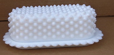 Hobnail milk glass butter dish