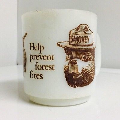 Title (ebay affiliate link): Vintage "Smokey The Bear" Help Prevent Forest Fires Milk Glass Coffee Cup Mug