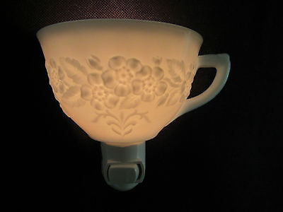 Indiana White Milk Glass Orange Blossom Tea Cup Custom Rotating Night Light