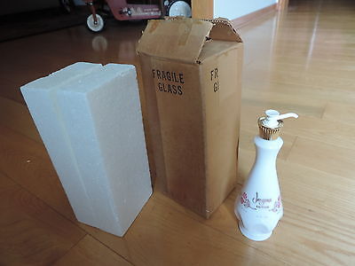 Vintage Jergens Lotion Bottle w/ Box White Milk Glass Pink Roses w/ Contents