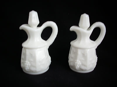 2 Westmoreland Vintage Paneled Grape Cruet Milk Glass w stoppers