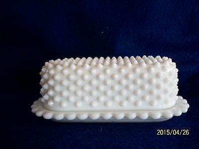 FENTON MILK GLASS HOBNAIL COVERED BUTTER DISH