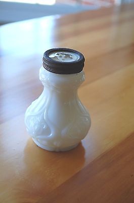 Antique EAPG Lovely white milk glass shaker with an unusual top HEAVY