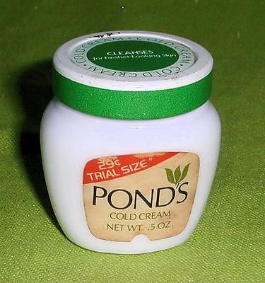 Title (ebay affiliate link): VINTAGE PONDS COLD CREAM TRIAL SIZE .5 oz IN MILK GLASS JAR, SOME CREAM IN JAR