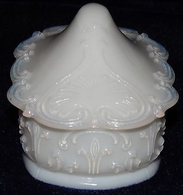 Vintage Elegant Opalescent Milk Glass Covered Trinket Dish Dresser Jewelry Box