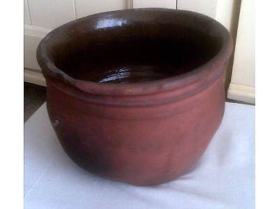 Large early redware New England bean crock pot