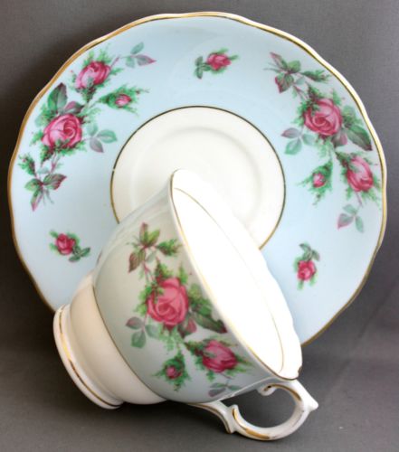 COLCLOUGH TEACUP & SAUCER-BLUE/ROSES G899