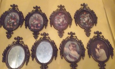 8 Vintage Ornate Brass Oval Glass Picture Frames and Mirrors Made in Italy