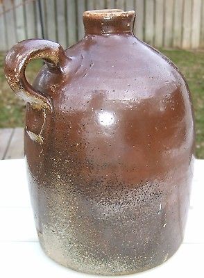 Title (ebay affiliate link): Old Antique Primitive Brown Salt Glaze Stoneware Whiskey Jug - Wonderful Patina