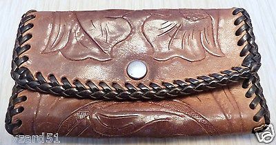 VINTAGE HAND MADE TOOLED & STITCHED LEATHER CAR HOME 4 RING KEY CHAIN HOLDER A+