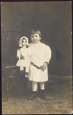 Title (ebay affiliate link): EARLY REAL PHOTO POST CARD, LITTLE GIRL HOLDING HUGE DOLL