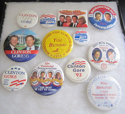 Title (ebay affiliate link): (12) Vintage 1992-1996 Bill Clinton, Clinton/Gore Campaign& Inauguration Buttons