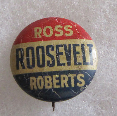 Vintage 1940 Ross-Roosevelt(FDR)-Roberts Red, White & Blue Campaign Button