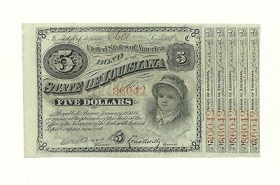 Title (ebay affiliate link): Post-Civil War $5.00 State of Louisiana "BABY BOND" 1870s