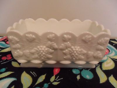 Westmoreland Oblong Planter White Milk Glass Marked Paneled Grape
