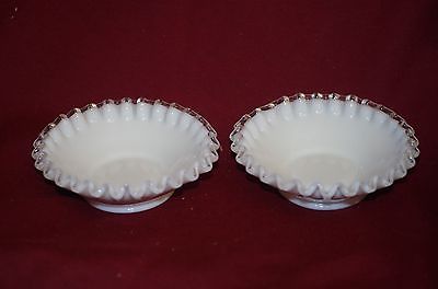 Fenton SILVER CREST Pair COMPOTES BOWLS White Milk Glass Clear Ruffle