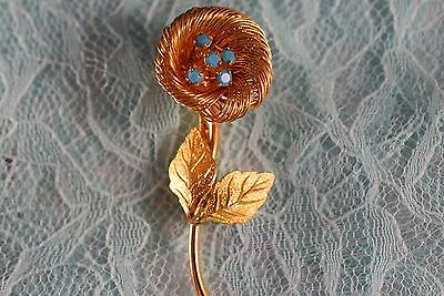 VINTAGE JEWELRY BEAUTIFUL GOLD TONE BLUE MILK GLASS STONES FLOWER BROOCH LOT 278