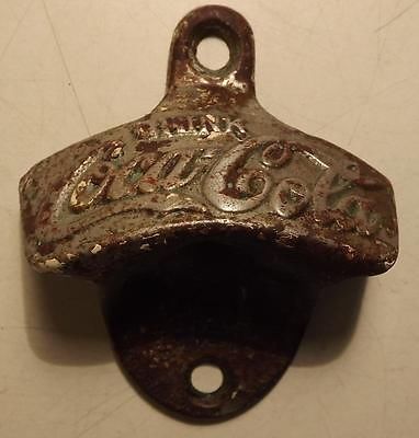 Antique Vtg Drink Coca Cola Cast Iron Wall Mount Bottle Opener Star X c1940s