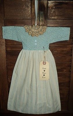 Title (ebay affiliate link): GRUNGY~PRIMITIVE WALL~CUPBOARD~DOLL DRESS BLUE FLORAL STRIPE FOLK ART DECOR