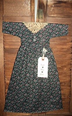 Title (ebay affiliate link): GRUNGY~PRIMITIVE WALL~CUPBOARD~DOLL DRESS BLACK FLORAL FOLK ART DECOR